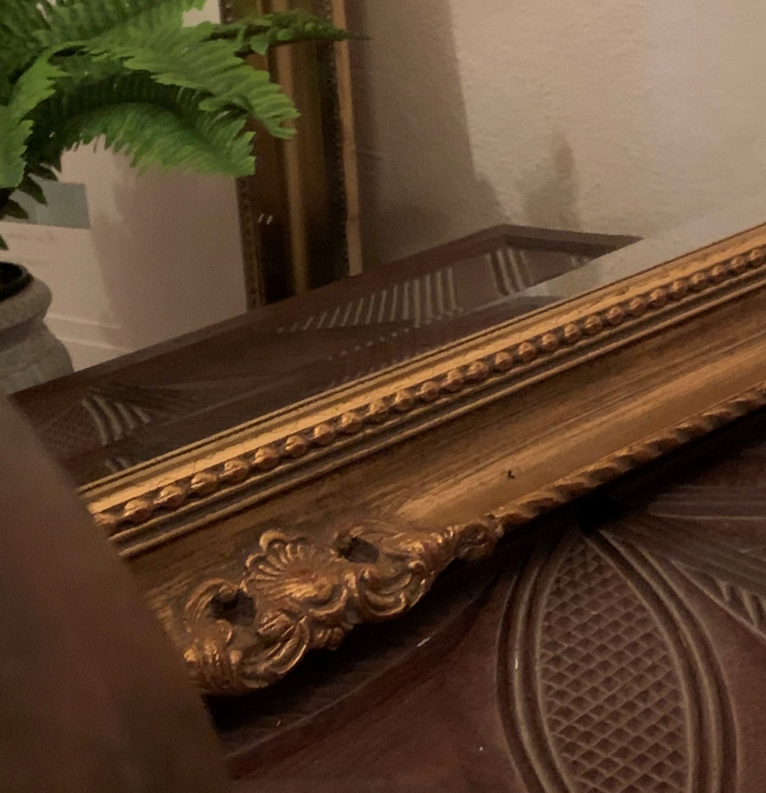 This most attractive Gilt Mirror is of a large size and is decorated with a scallop and floral motif, with beading on the inside of the frame. It has bevelled edge glass and is constructed of wood with the original gilding. It is in overall excellent condition and the back of the mirror has been renovated.