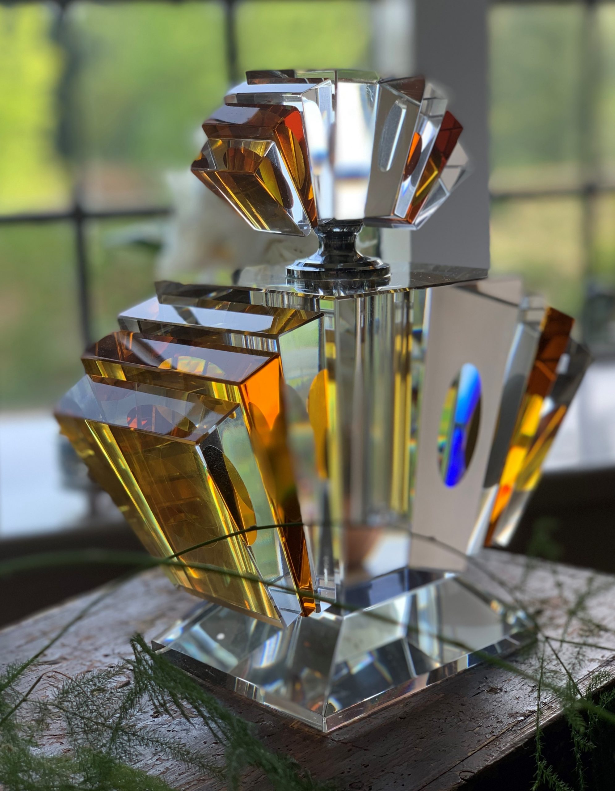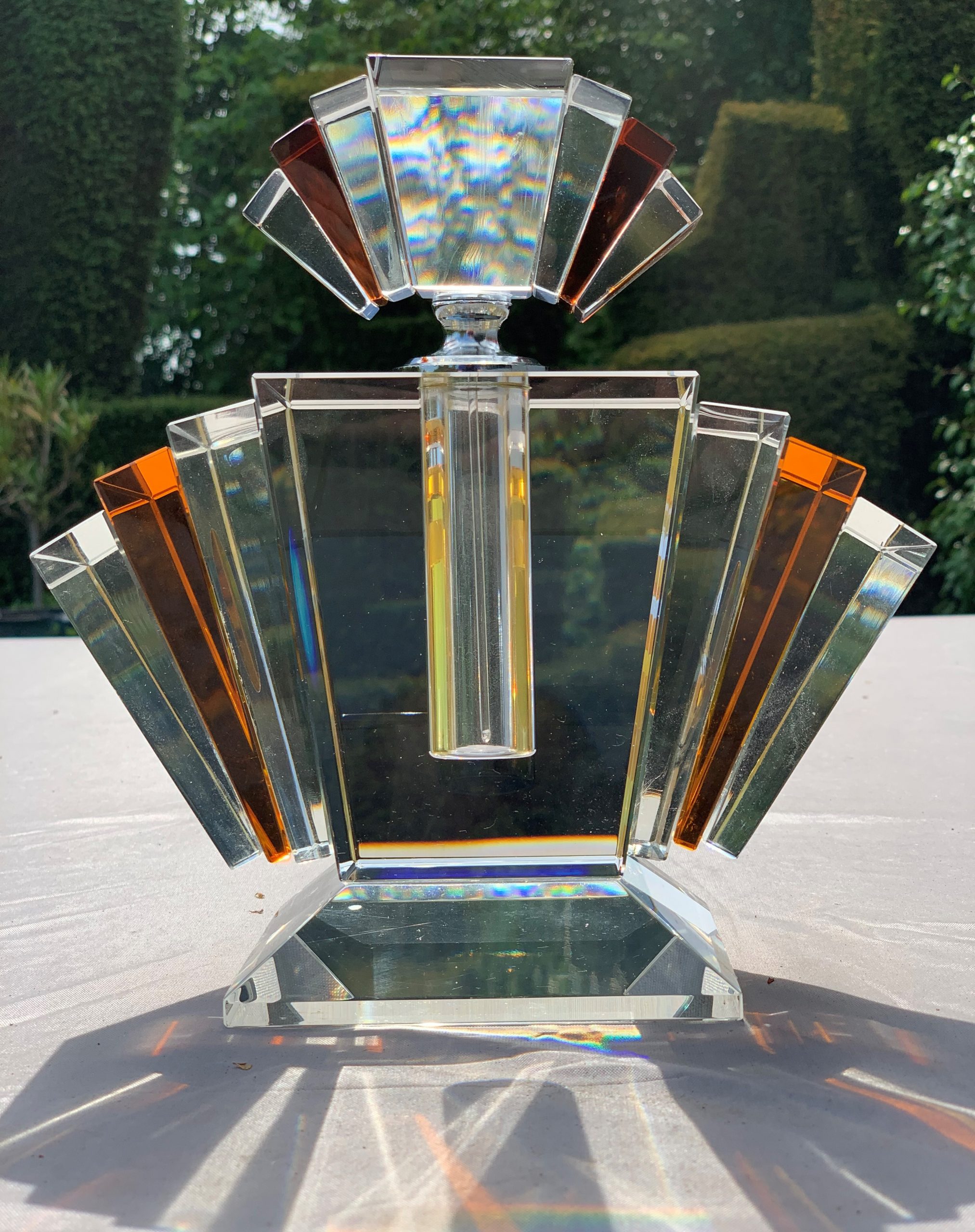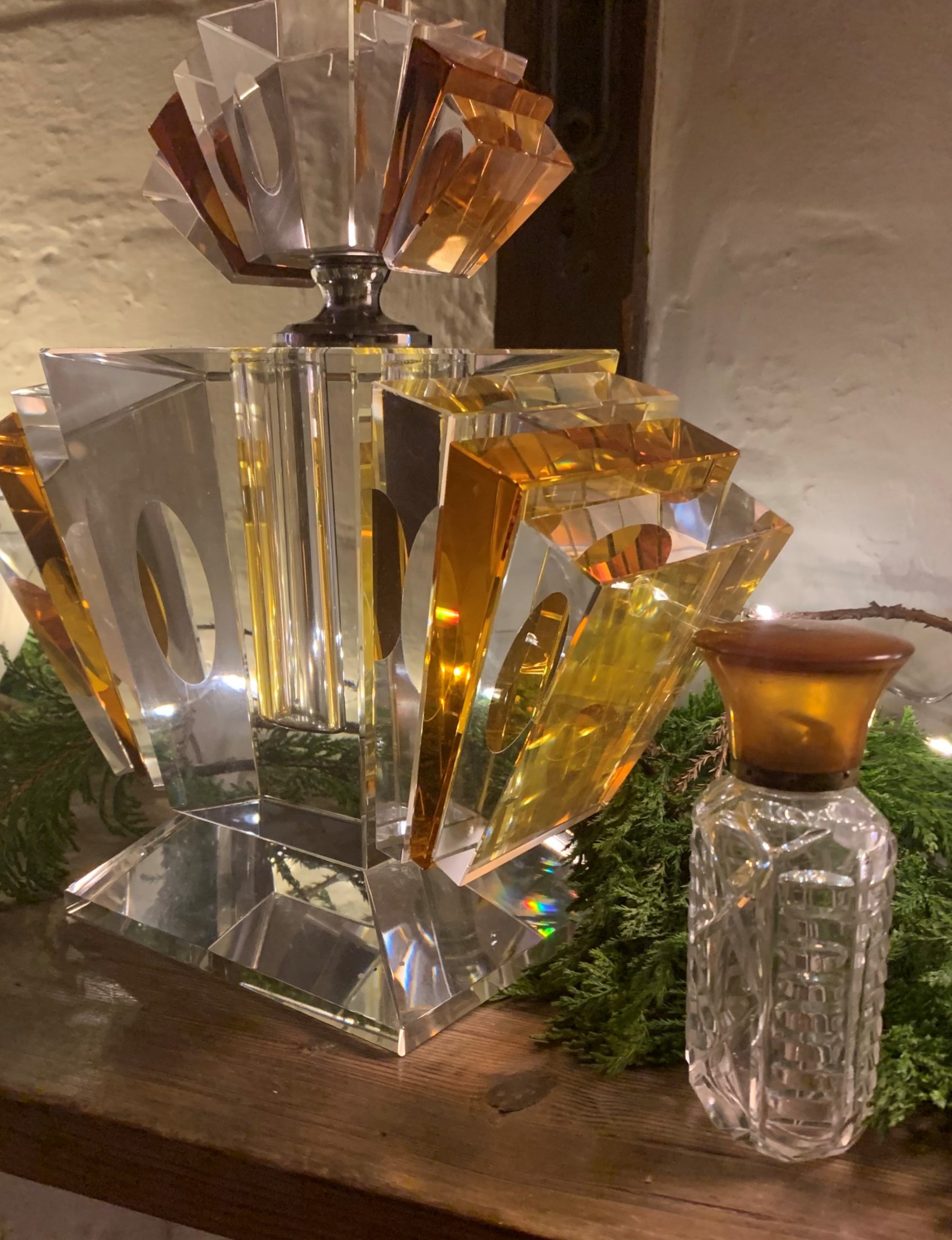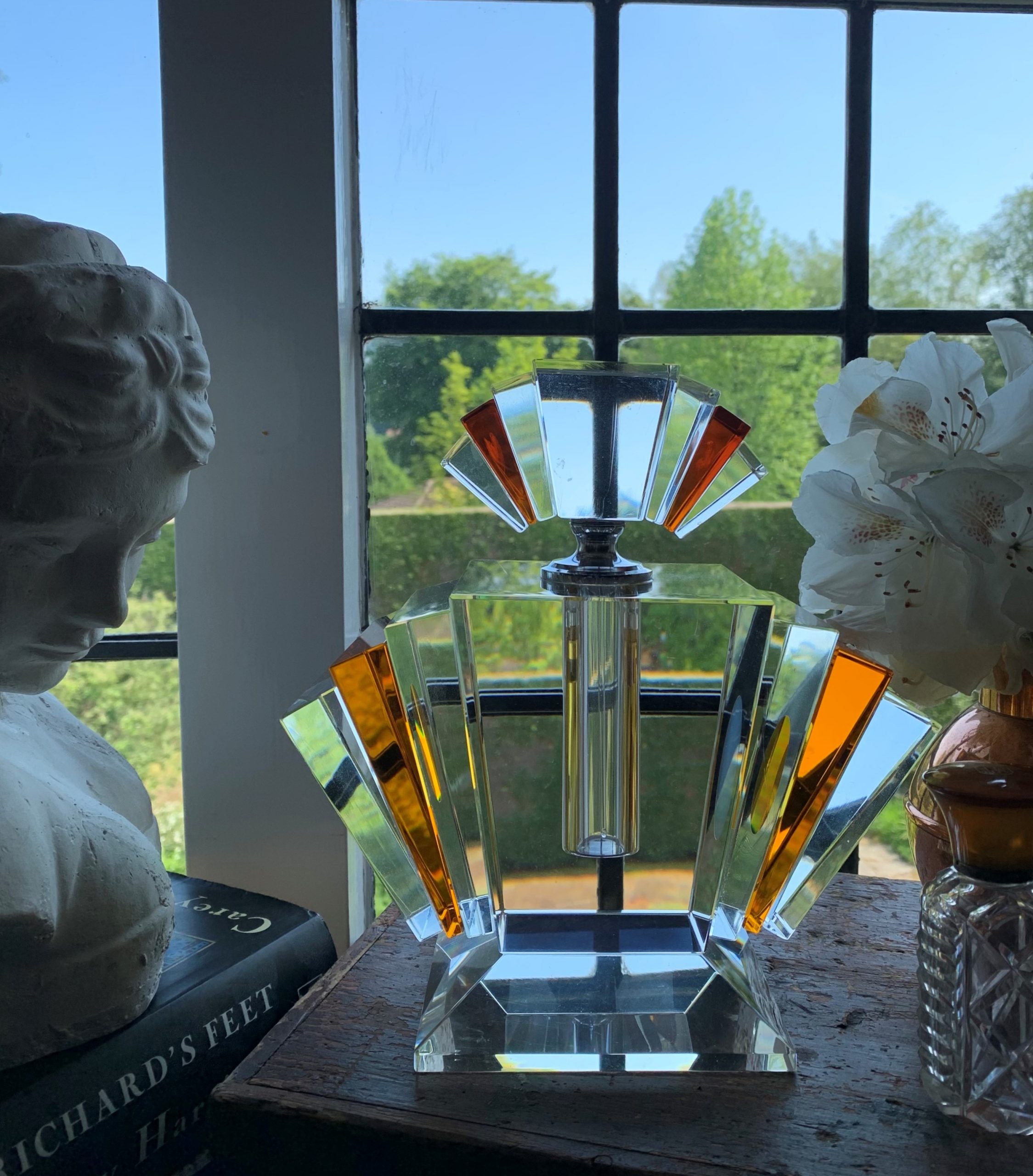 Art Deco Style Clear & Amber Crystal Perfume Bottle – SOLD!