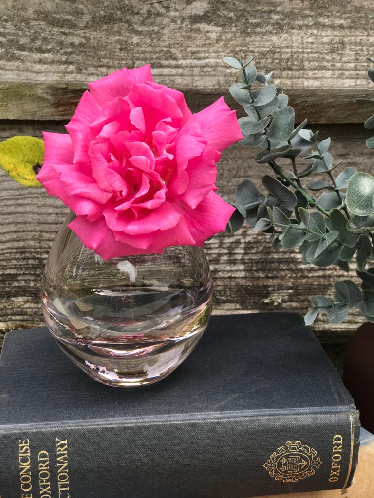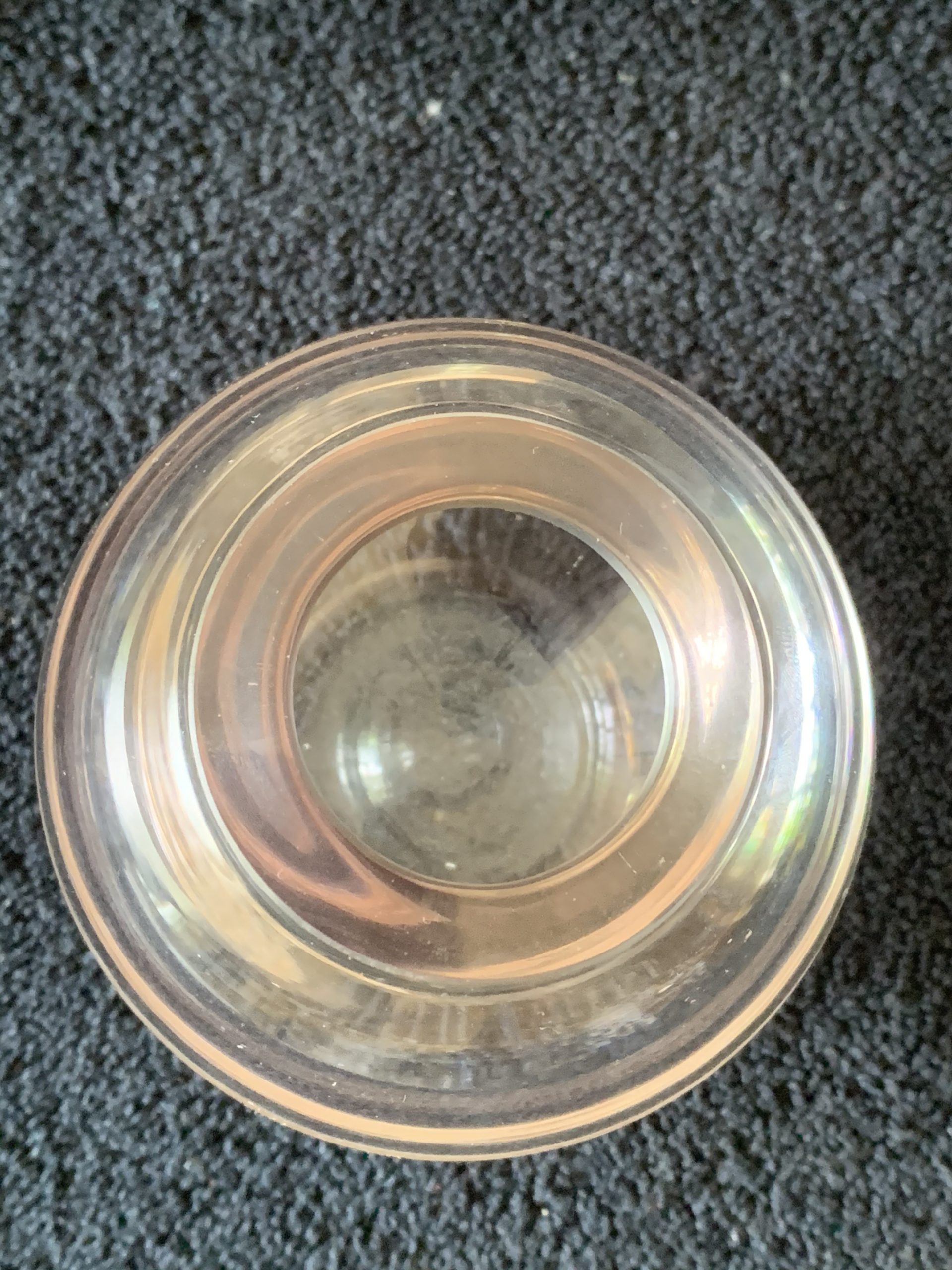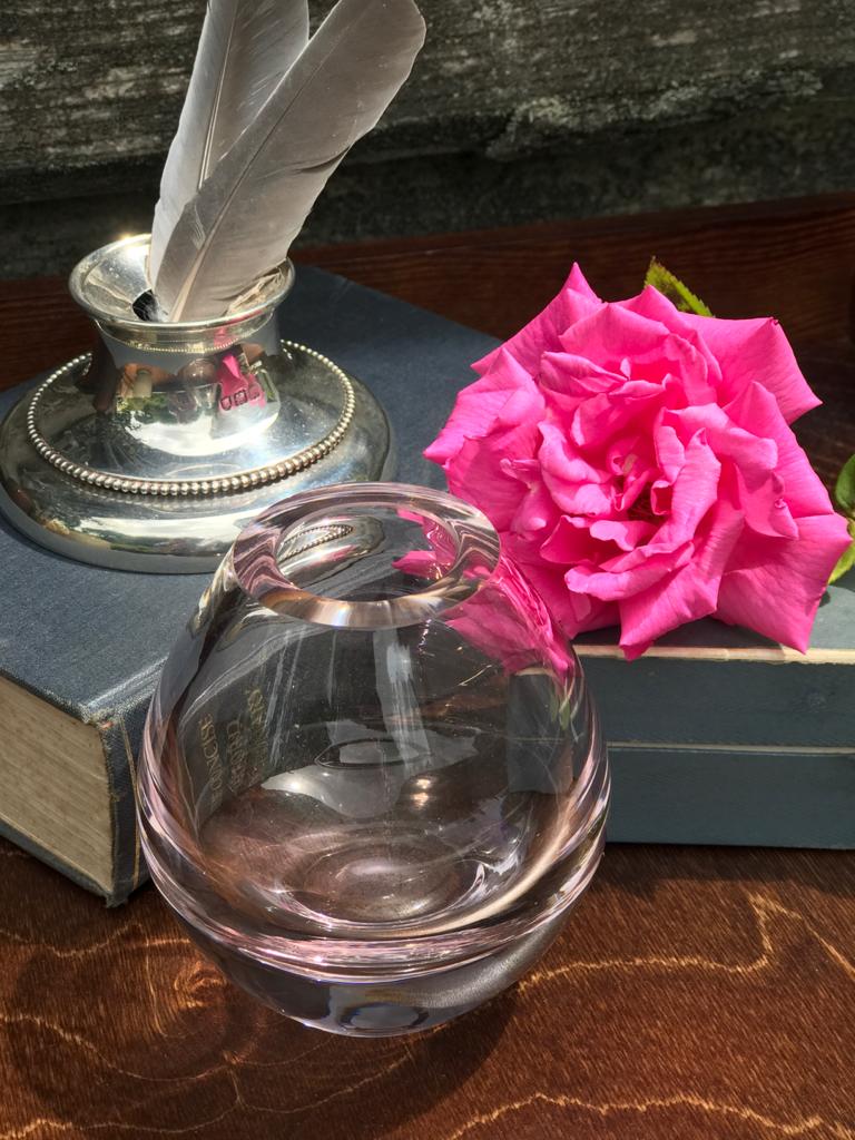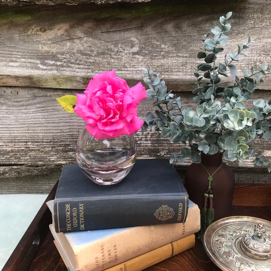 This elegant small glass posy vase has a pink hue and is just a lovely piece to highlight a single bloom, posy or foliage.  It is striking and very heavy with a deep glass base, is highly tactile and is hand made so has air bubbles which can be seen in the photos.