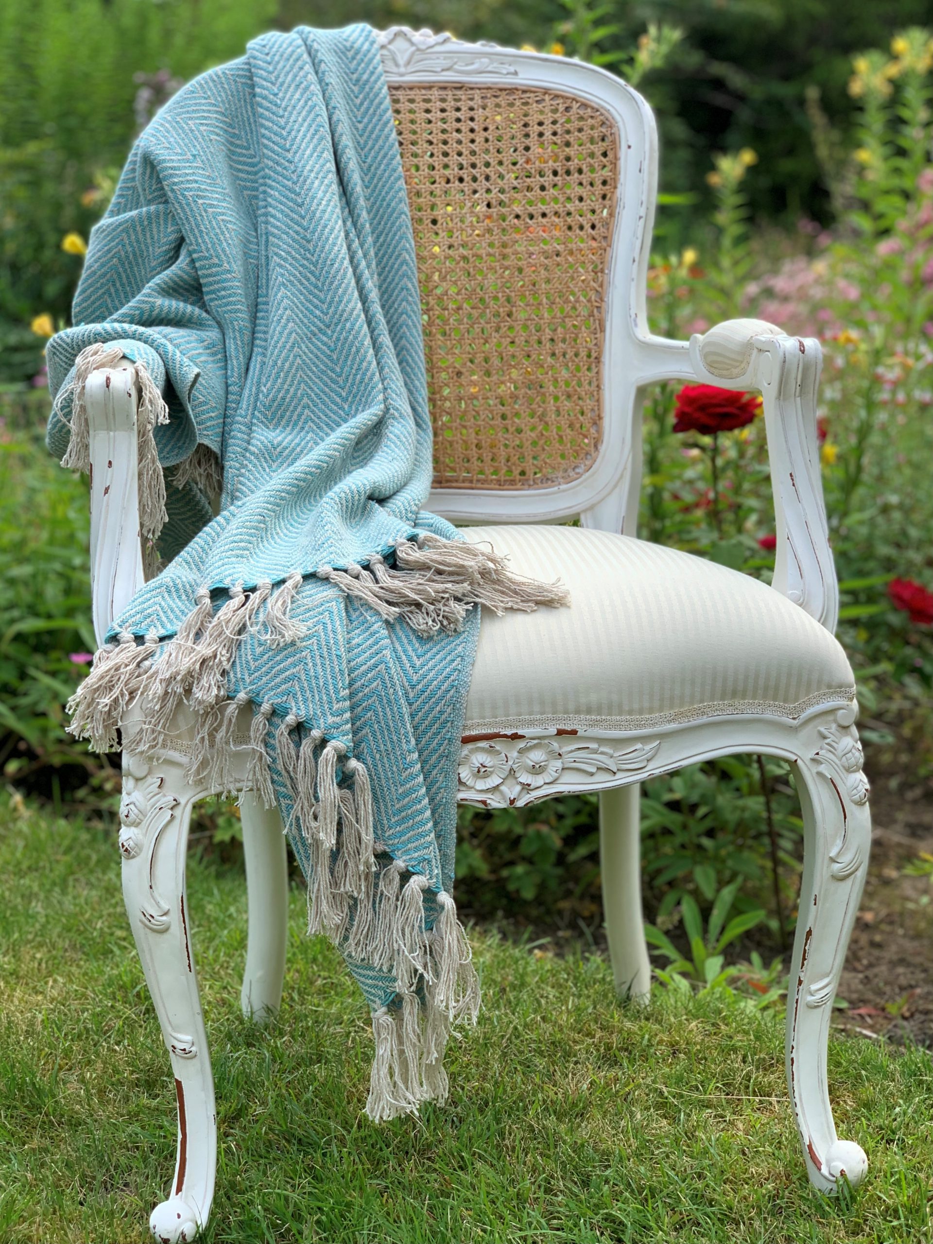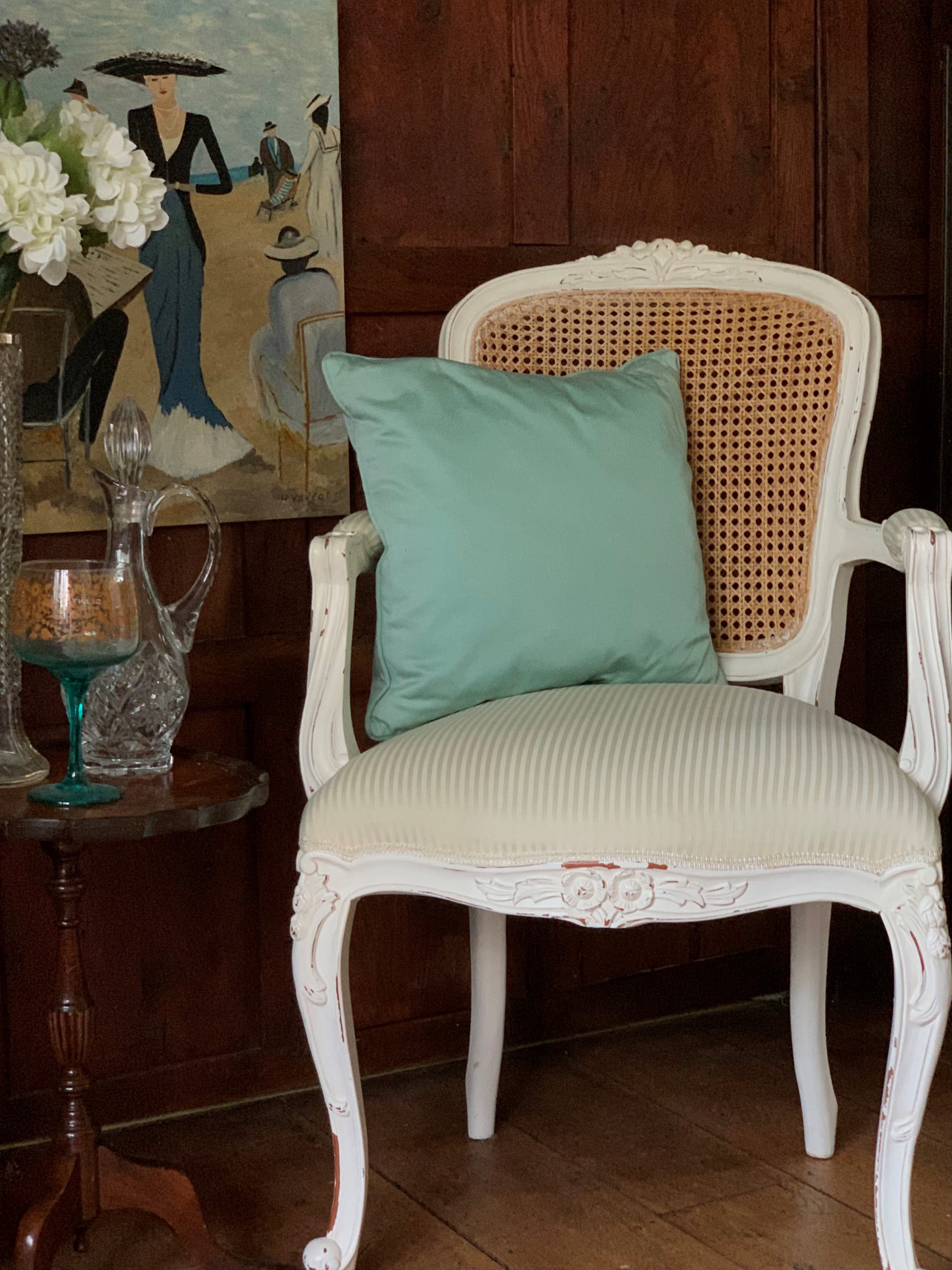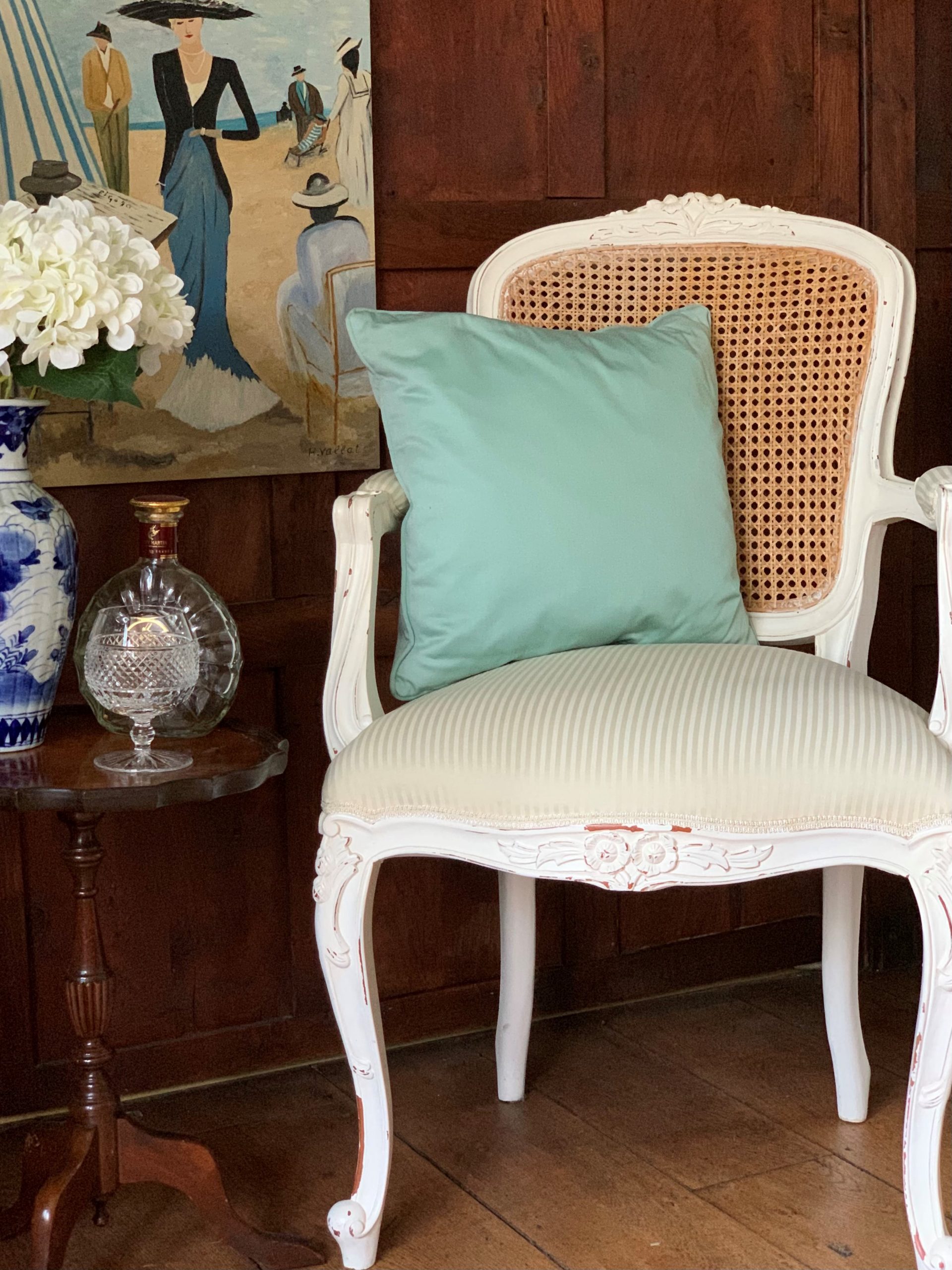 This classic Armchair has a relaxed sophistication about it and is upholstered in a striped cream fabric. It is the perfect choice for any space with its graceful French Country style carving in a slightly distressed effect. It has fitted upholstered armrests and a thick, comfy seat and is finished with carved cabriole legs.