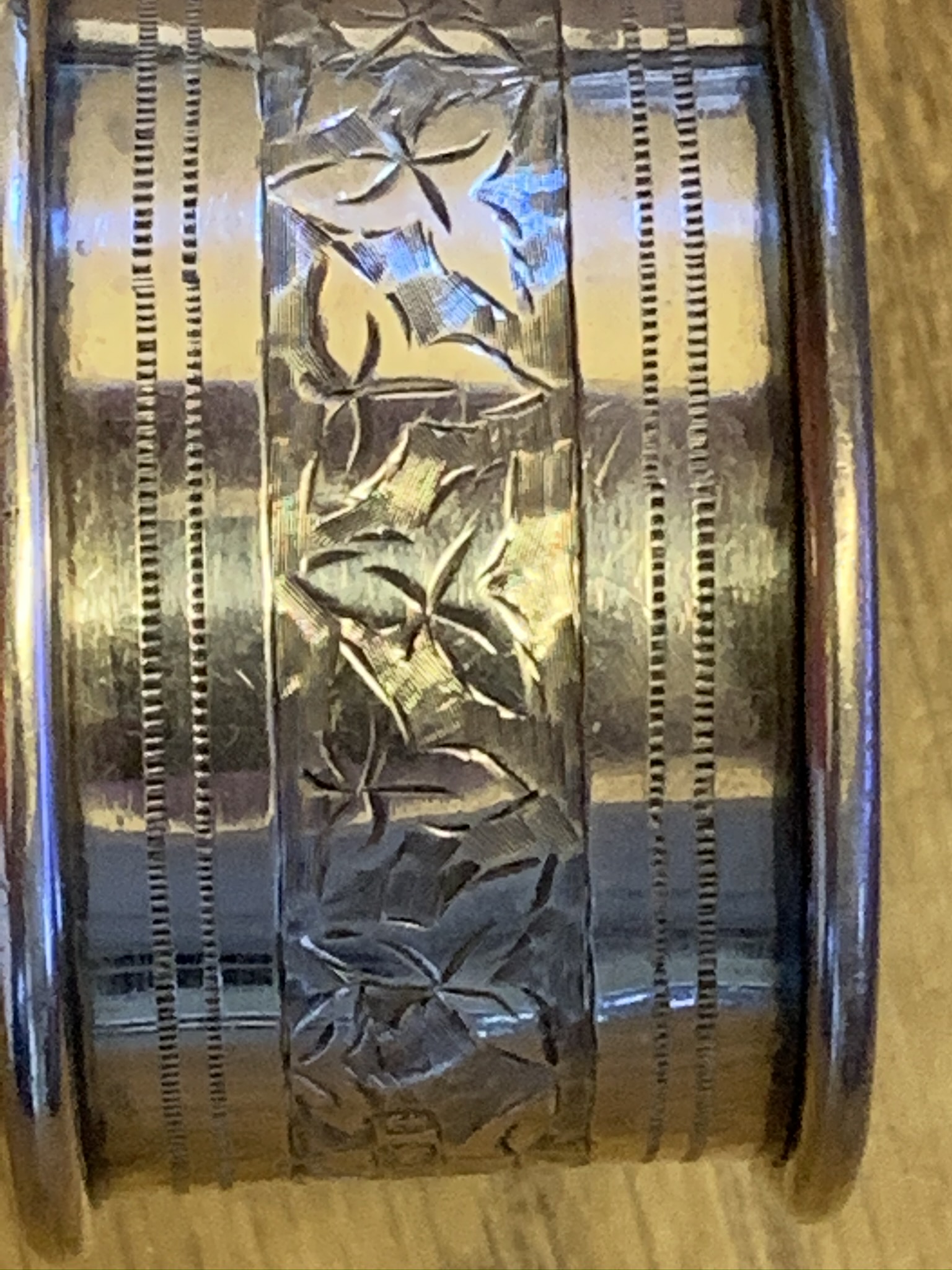 This lovely pair of Antique Silver Napkin rings, Birmingham 1905, feature a floral banded design in the middle and pierced banding above and below the floral decoration.