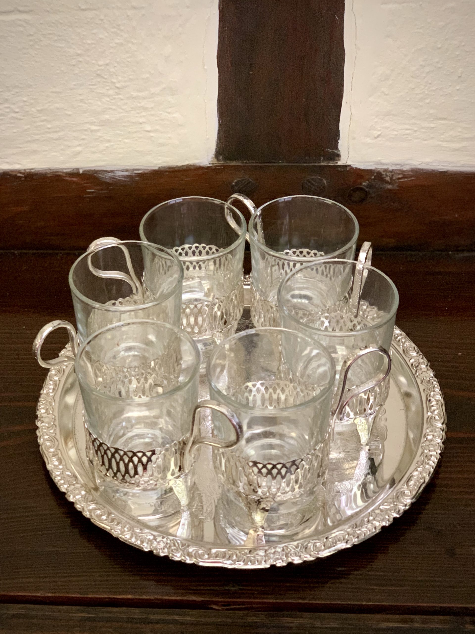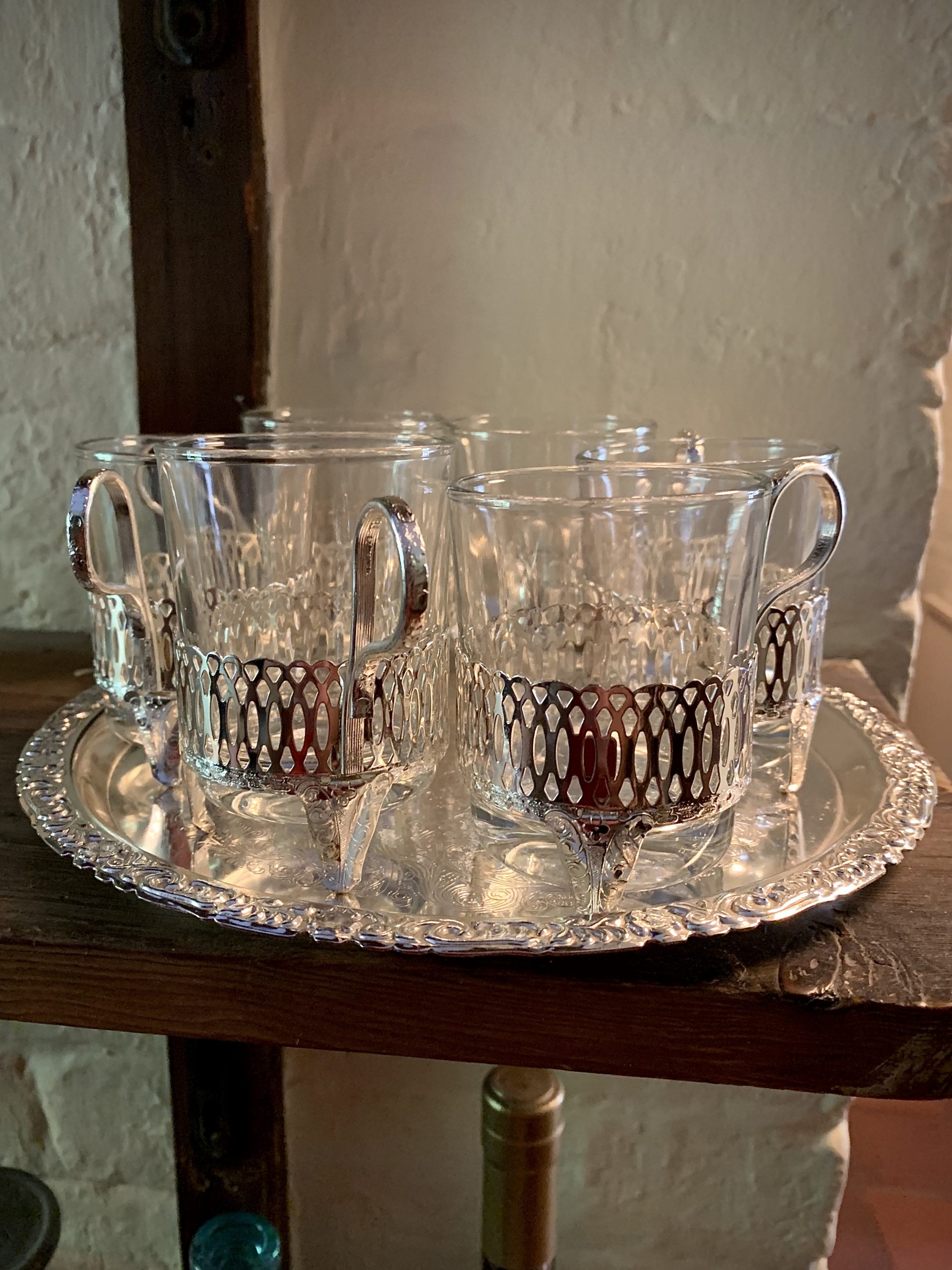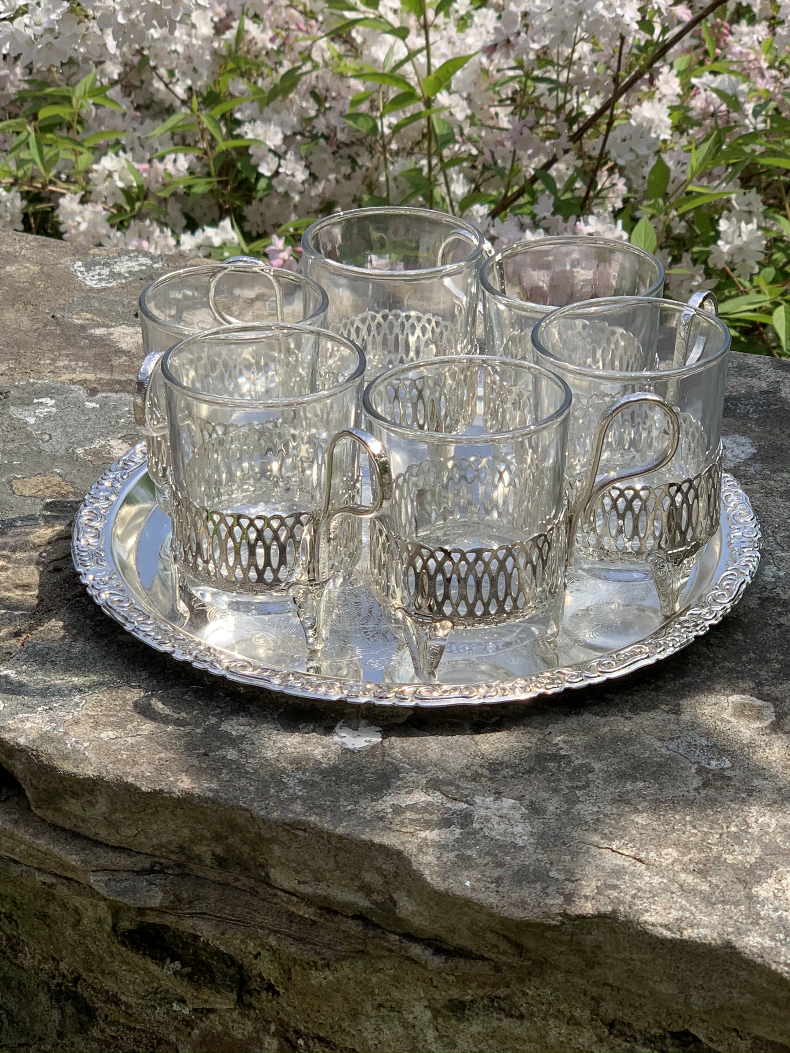 A set of Six Toddy Glasses and Tray EPNS and made in England by Mayell.