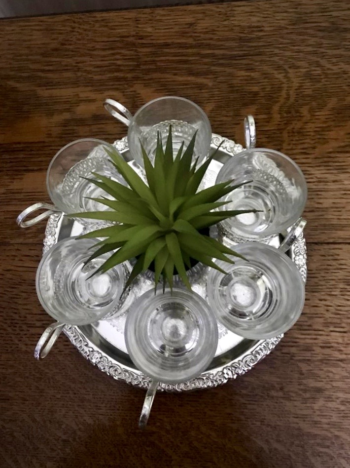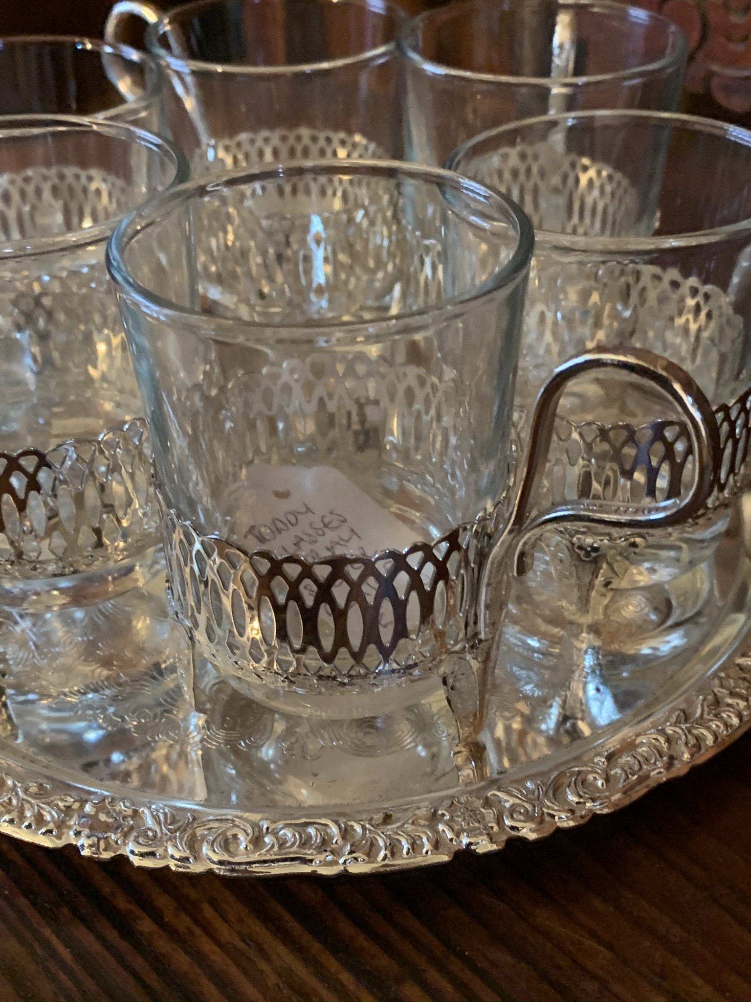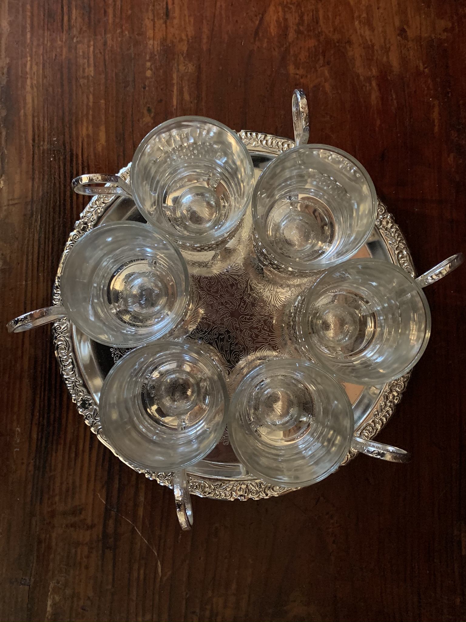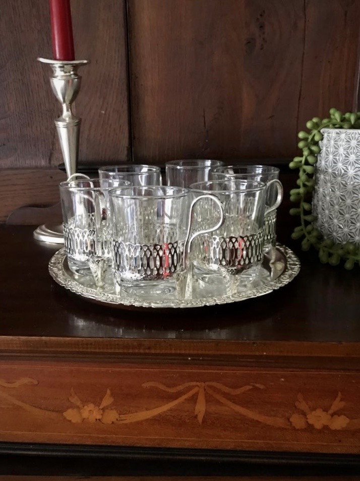 A set of Six Toddy Glasses and Tray EPNS and made in England by Mayell.