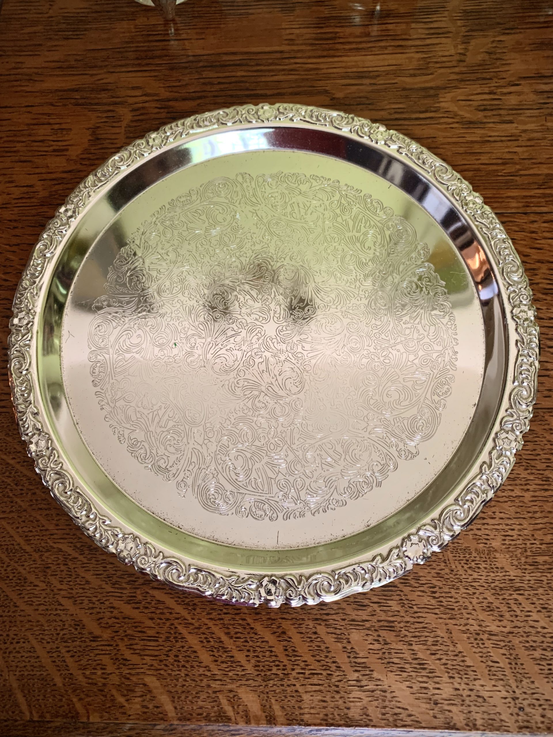 A set of 6 Toddy Glasses and Silver-plated Circular Gallery Tea Tray